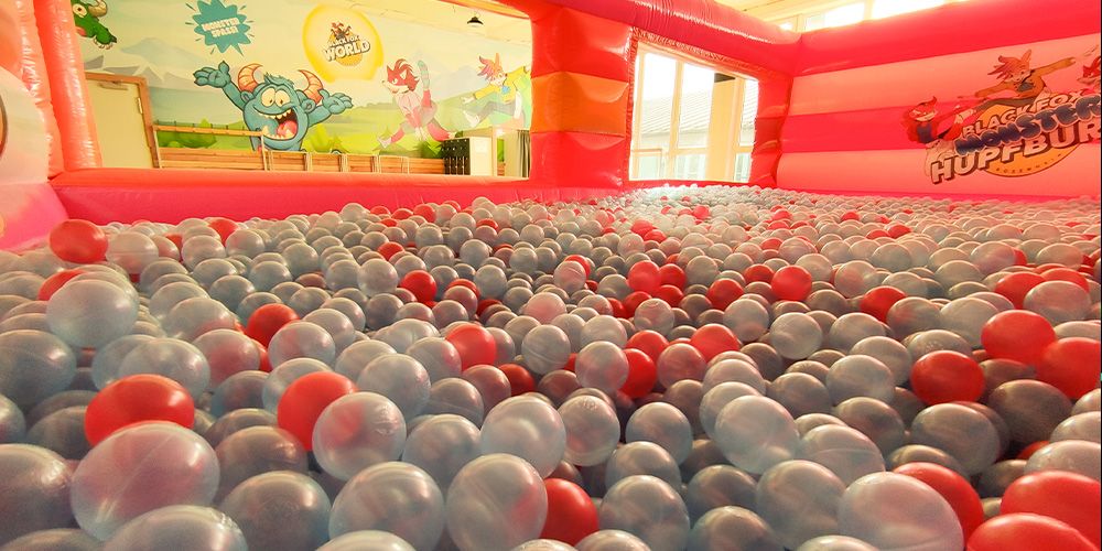 Die Monster-Hüpfburg bietet 17 verschiedene Areale, die für Kinder und Erwachsene. Es gibt unter anderem einen "Wipeout"-Bereich mit rotierenden Armen und Inseln, einen Vulkan, Bällebäder und vieles mehr. Diese vielfältigen Areale laden zum Springen, Klettern und Erkunden ein, während alle sicher spielen können. Es ist ein Ort, an dem jeder einfach nur Spaß haben kann!